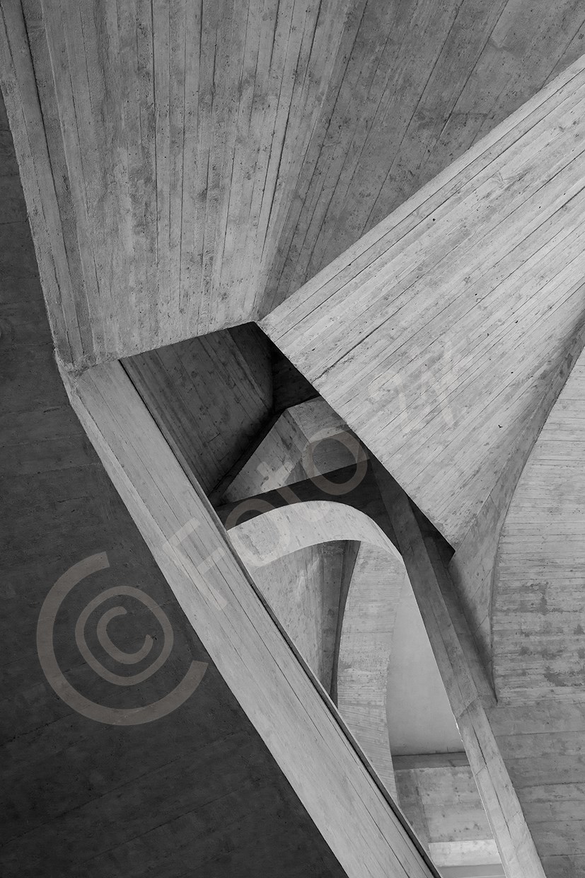 Die Serie entstand mit der Absicht, eine farbige Verbindung vom Ost- zu den aus Beton gebauten, imposanten Westtreppenaufgang zu finden. Eine sehr spannende Aufgabe. Vergleichen Sie die Linien und Strukturen mit der Schwarzweiss Serie «Lebendige Festigkeit» weiter unten.
