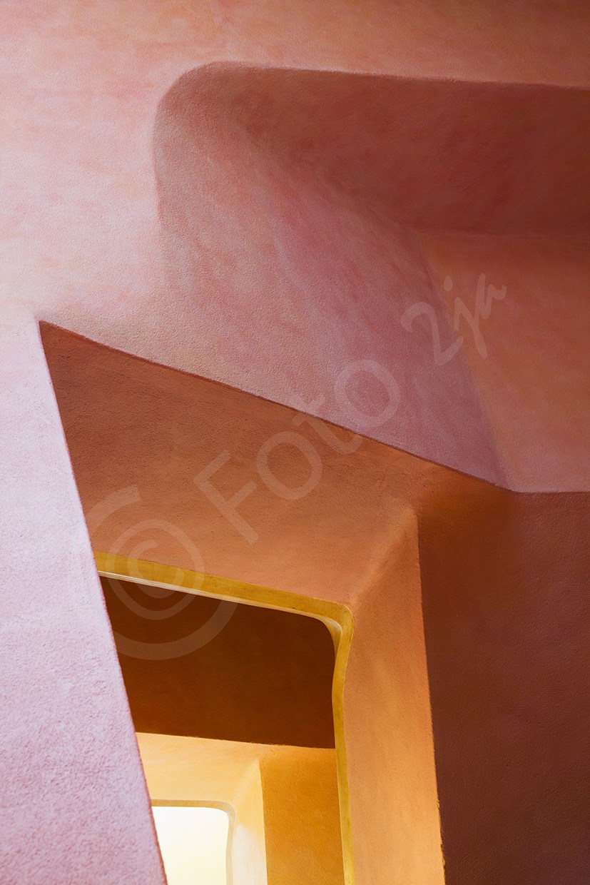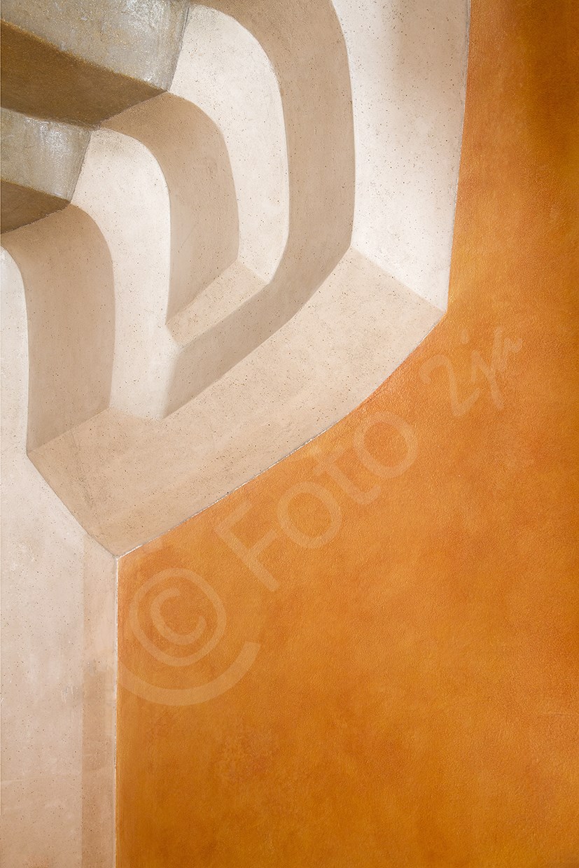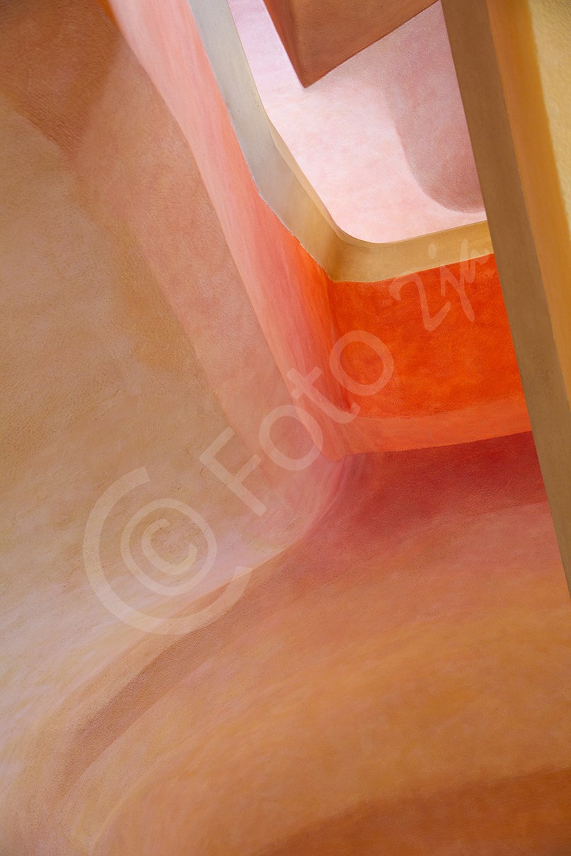 Die Fotos sind im Goetheanum (Hauptsitz der anthroposophischen Gesellschaft) im farbigen Ost- und im von Beton dominierten Westtreppenhaus entstanden. Die fotografierten, farbigen Ausschnitte erinnern an Gemälde und auf den ersten Blick nicht immer als Foto erkennbar. Es war eine grosse Herausforderung und hat viel Spass gemacht, aus den vielen Fotos Serien zusammen zu stellen, die (eu)rhythmisch und farblich zusammenpassen.