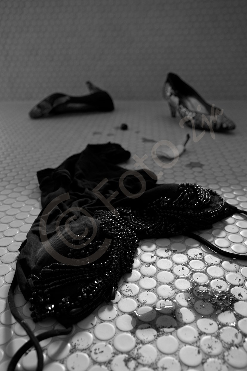 Wer ist sie? Sie ist jemand, der schliesslich spät nach Hause kommt und alles abstreift, was zu einem Nachtvogel gehört. Ohne die Schminke, dem Haarschopf und ohne eine ihrer vielen Maskierungen, landet sie im Abstellraum, nackt und verloren…, bis zum nächsten Rollenspiel.