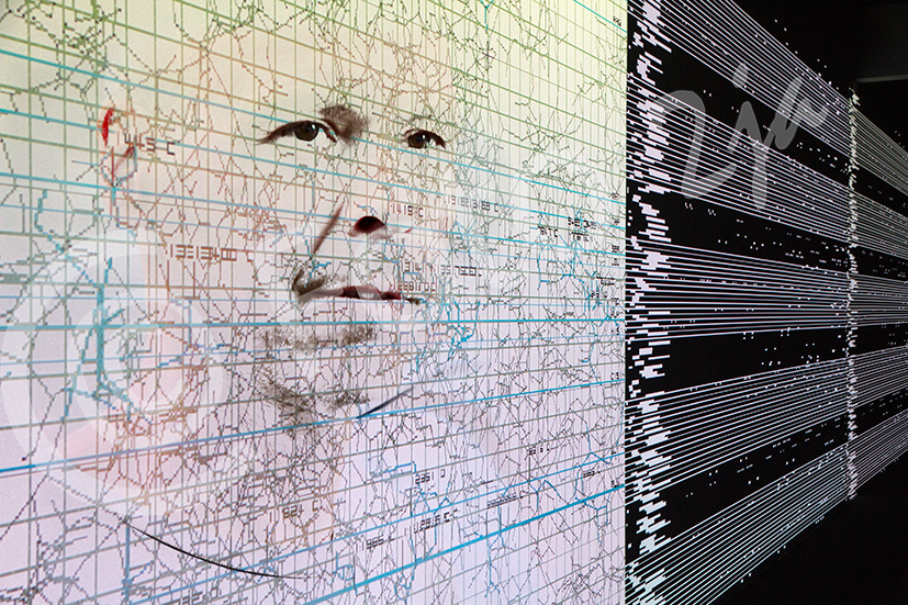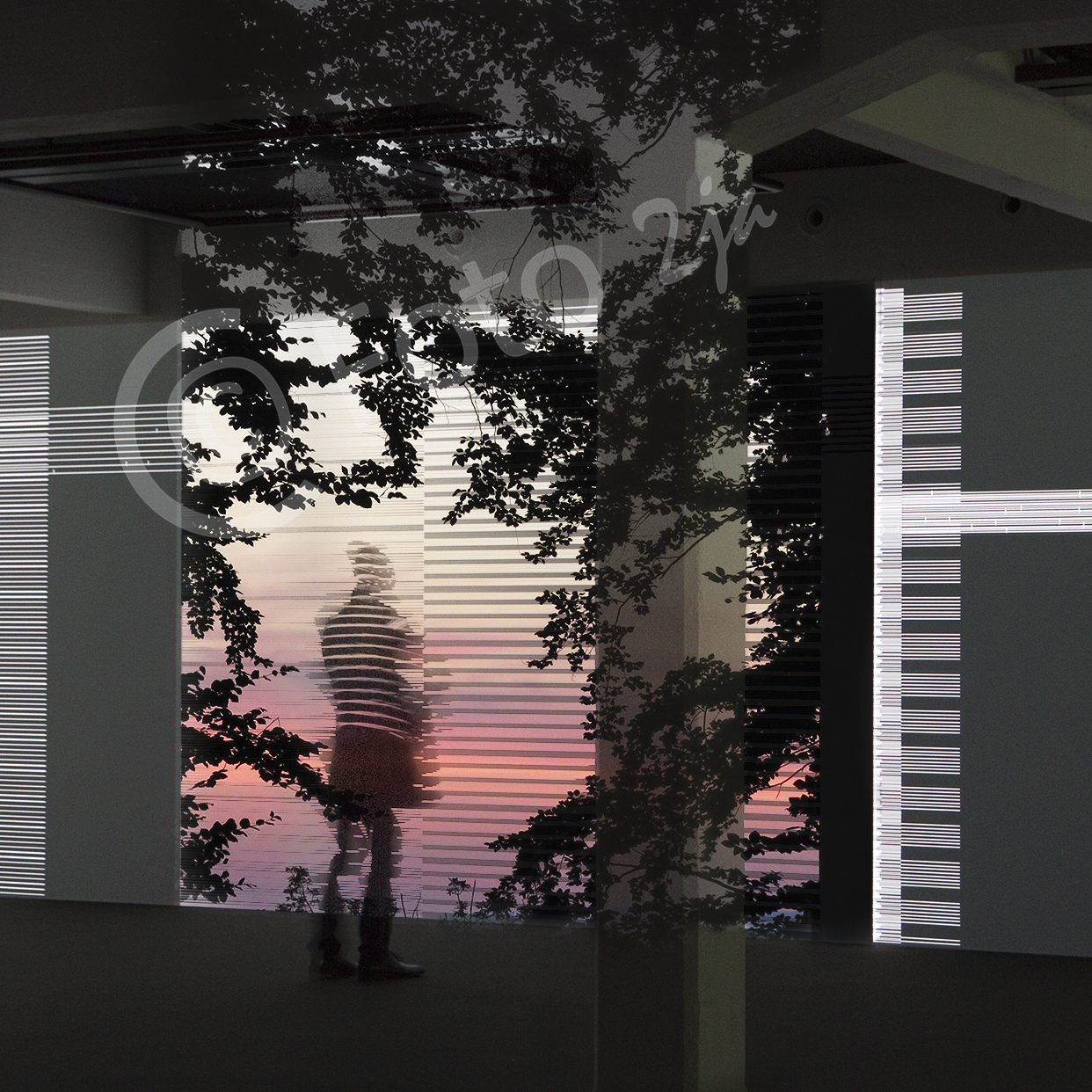 Ein Teil der zusammengesetzten Bilder entstanden im HEK, Dreispitz (Basel) während einer Ausstellung von Ryoji Ikeda.